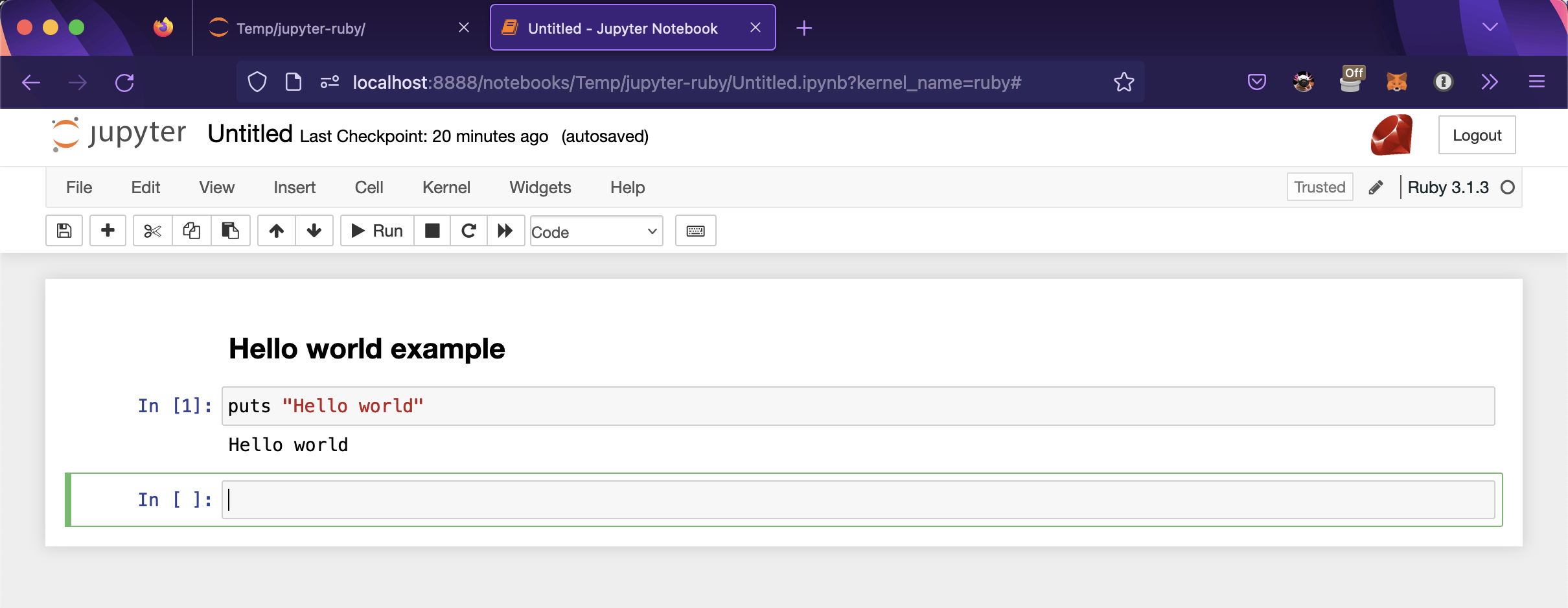That’s it. Just restart Jupyter, and now you can run ruby code.